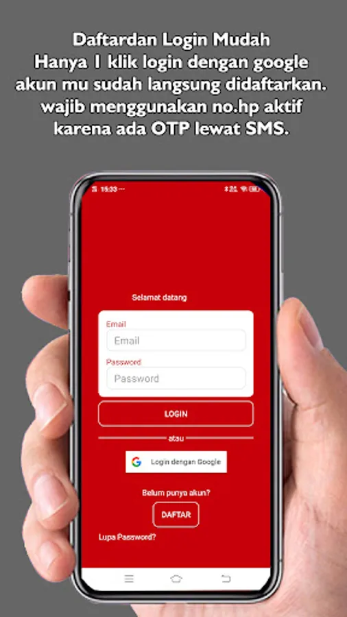 -Easy account registration, can login with Google Account. Please use the correct mobile number because we will send OTP code via SMS to login.