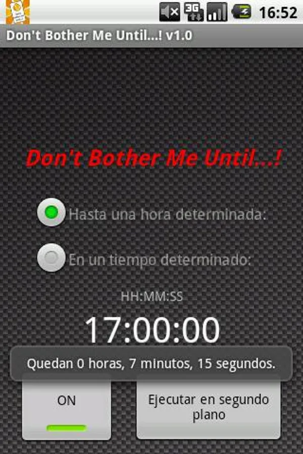 Don't Bother Me Until...! has been conceived for this task. We just have to choose between the two operational modes (until a specified time or during a specified time) and turn on the program. It will manage to get the sound back to our cell phone at the right time.
