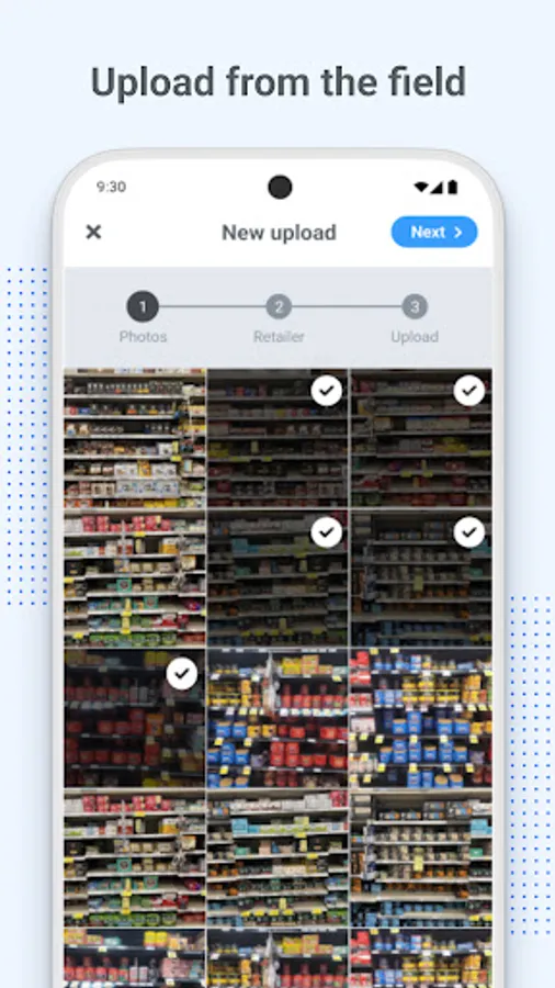 We'll automatically keep your store photos in a separate album on your device and upload them immediately to the Shelfgram platform.