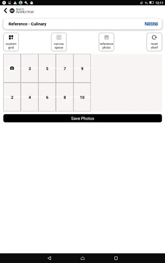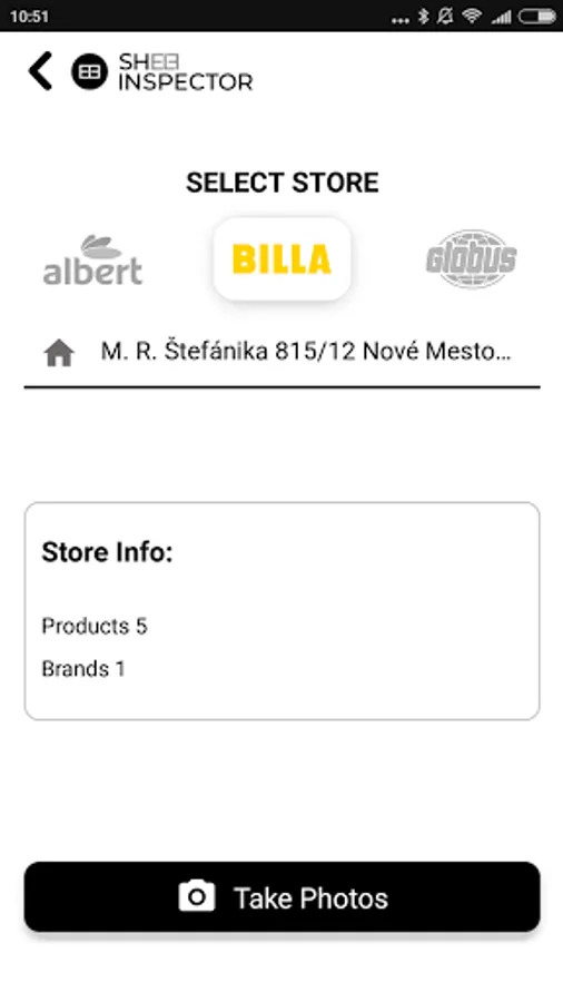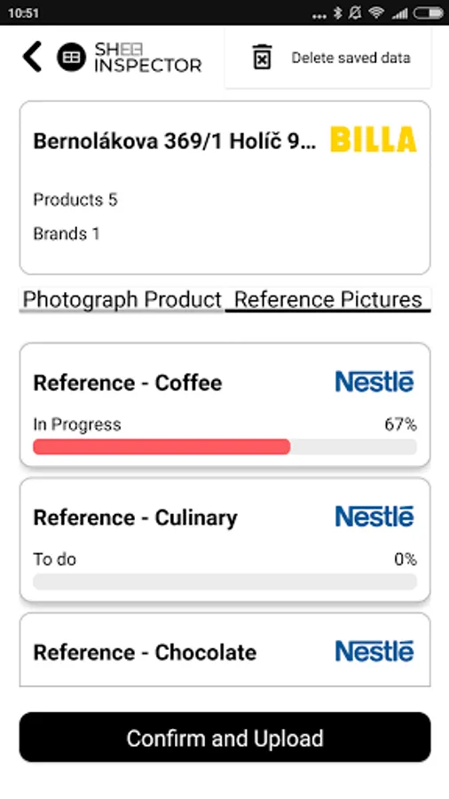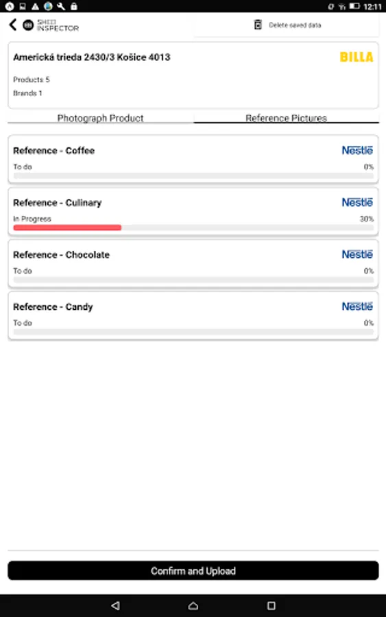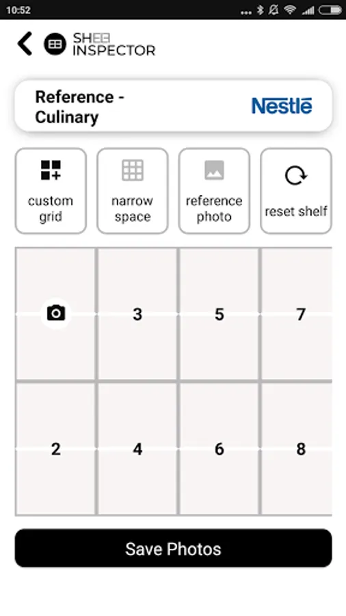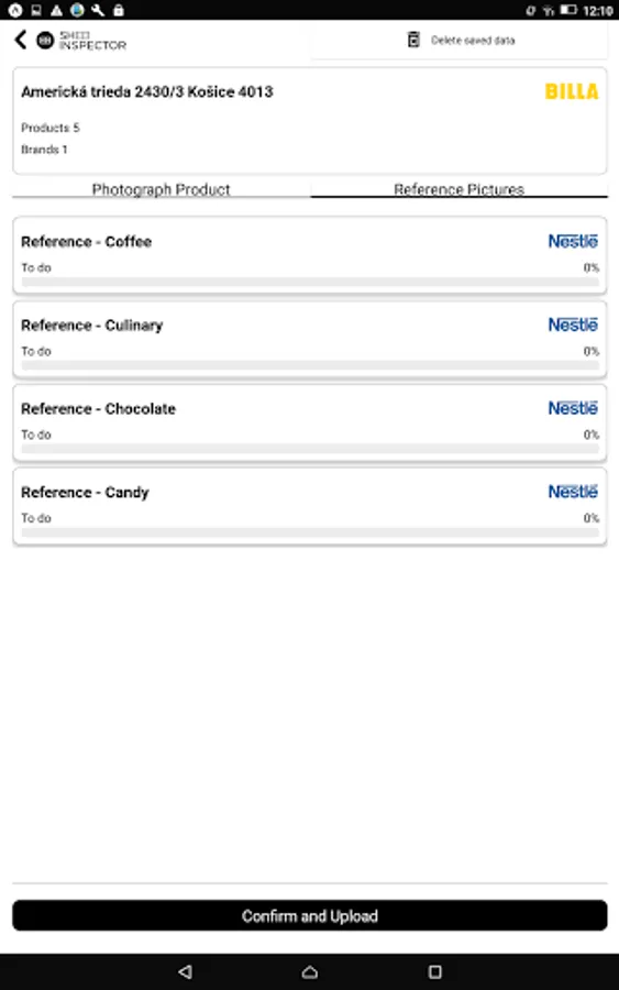 App for employees, who are restocking supermarket shelves for brands, that care about what product goes where. Functionality of the app allows to choose specific store and make reference photos of how it should look like, once the shelves are fully stocked. When all the pictures are taken, they can be uploaded for future use.