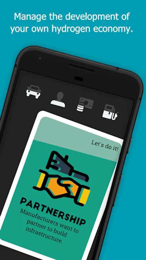 Swipe to manage the development of your own hydrogen economy. Master the tradeoffs and tensions between the forces acting on you and your environment to build a long-lasting, successful hydrogen economy. Forge partnerships, build infrastructure, manage governmental relations, and more to succeed!