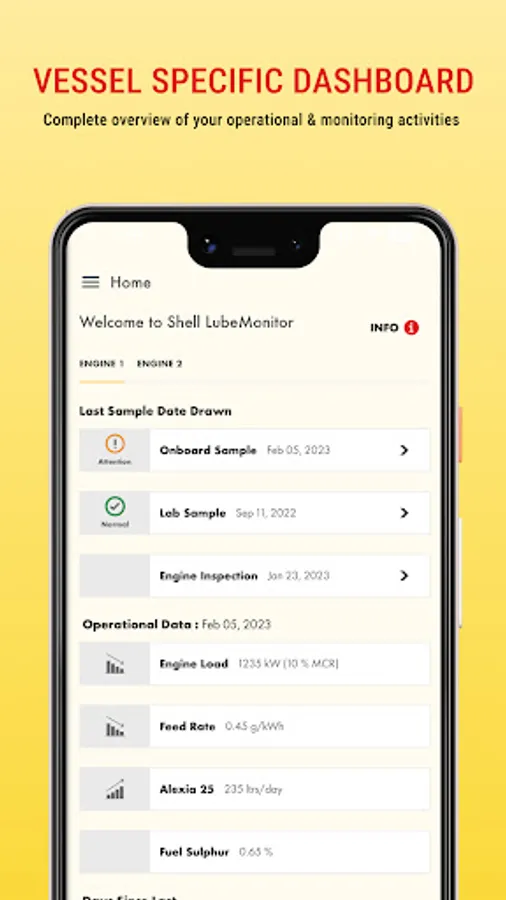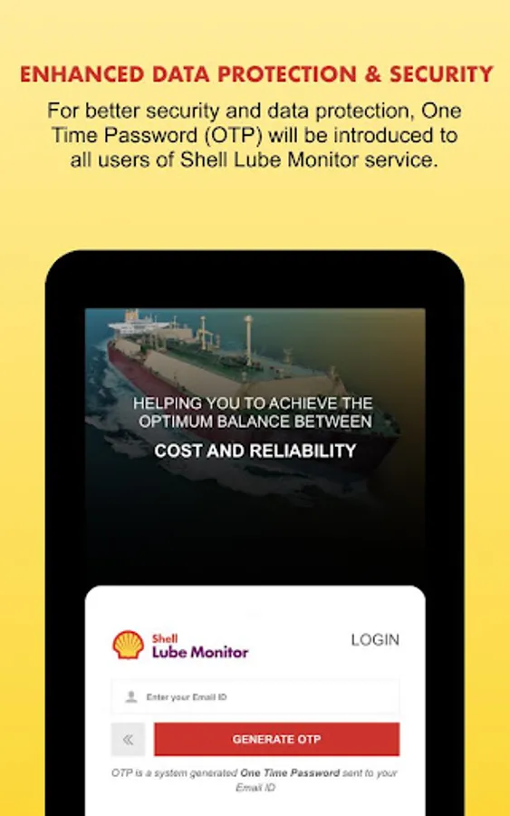 Note: An active LubeMonitor account is required to use this app. Please contact you Shell Marine Account Manager for more information.