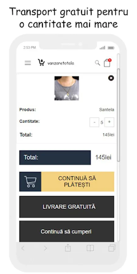 Therefore, we created this store with the symbolic name Vanzaretotala, which is the dream of every buyer, because our mistake is your happiness.