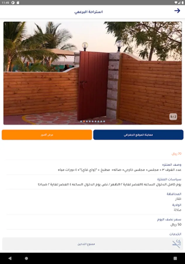 The application allows users to book breaks by electronic payment and allows choosing breaks based on the governorate, state, expected price, and services provided by the breaks