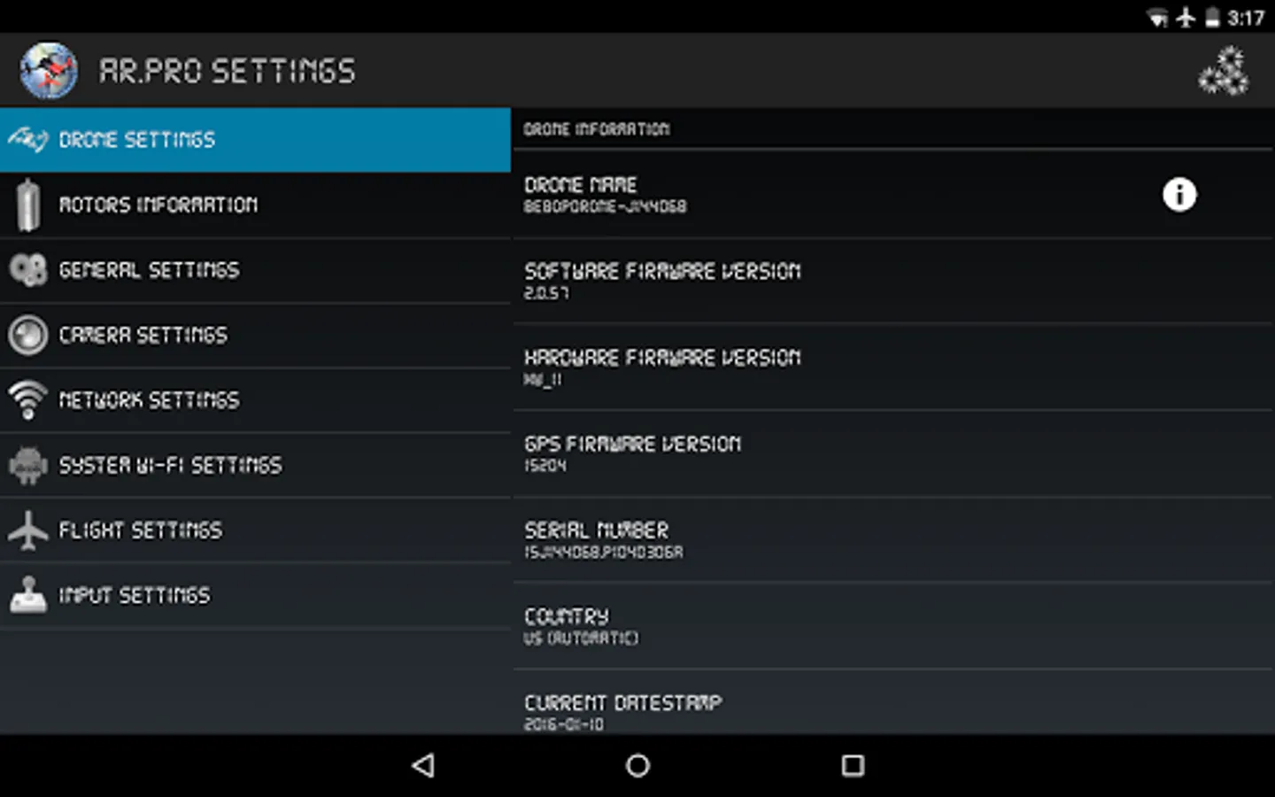 AR.Pro 3 provides for remote control capabilities of Parrot Bebop V1, V2, and numerous other Parrot drones. It exposes many of the same functions as Parrot’s own Freeflight application but implements a unique user experience and allows further customization of your drone.