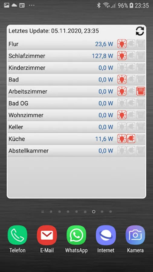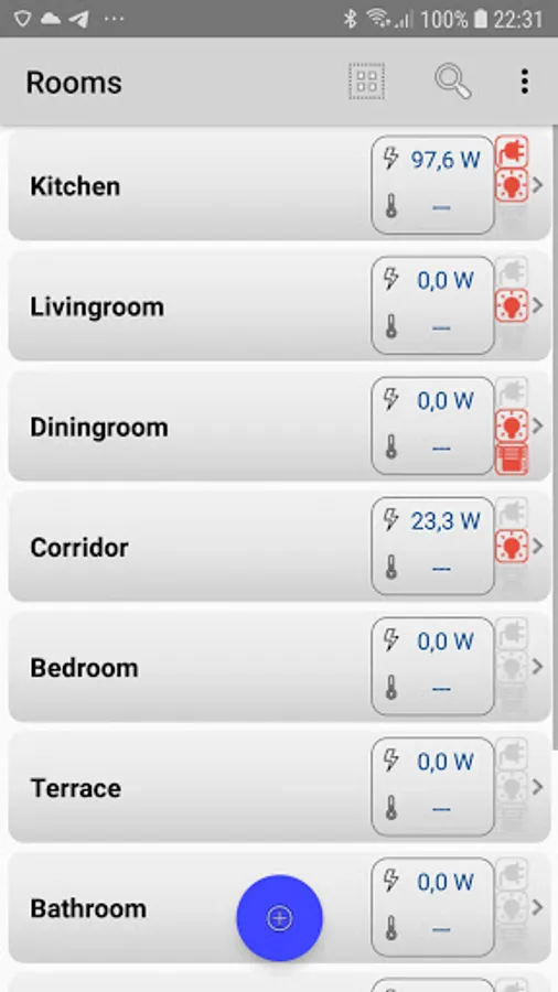 It offers an Room and Group view and provides Home Screen Widgets (Room overview and configurable widget buttons).