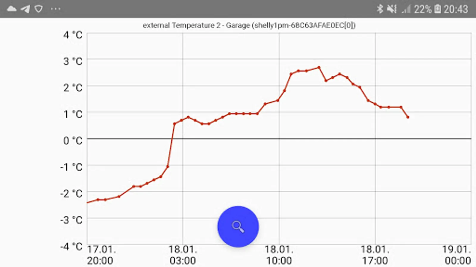 All Shelly data sensor outputs can be logged inside the App - cloud free. The data is visualized in diagrams.