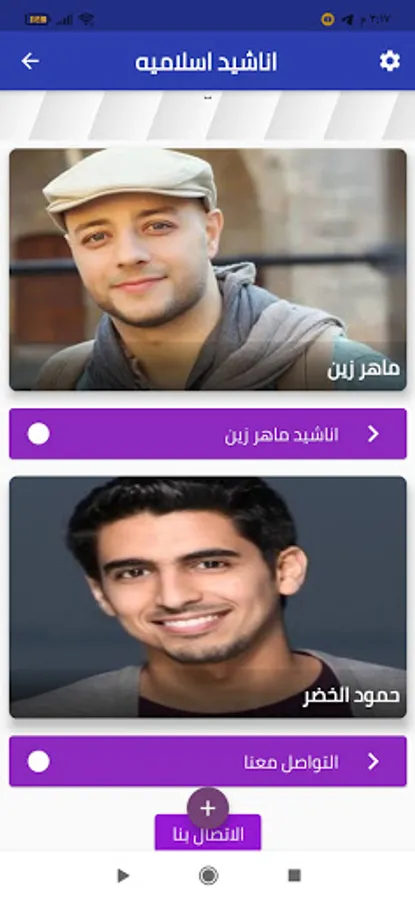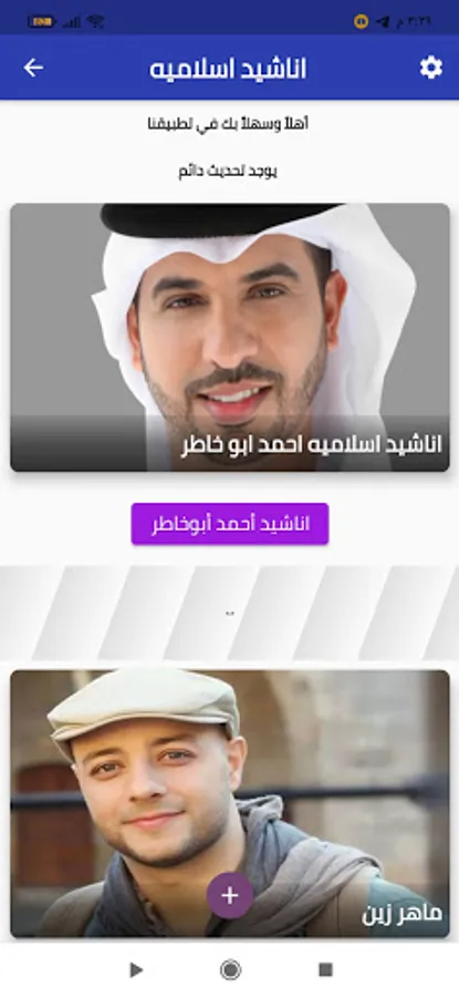 There is a permanent update for the application. It includes the vocalist Maher Zain, the vocalist Ahmed Abu Khater, and the vocalist Hamoud Al-Khader