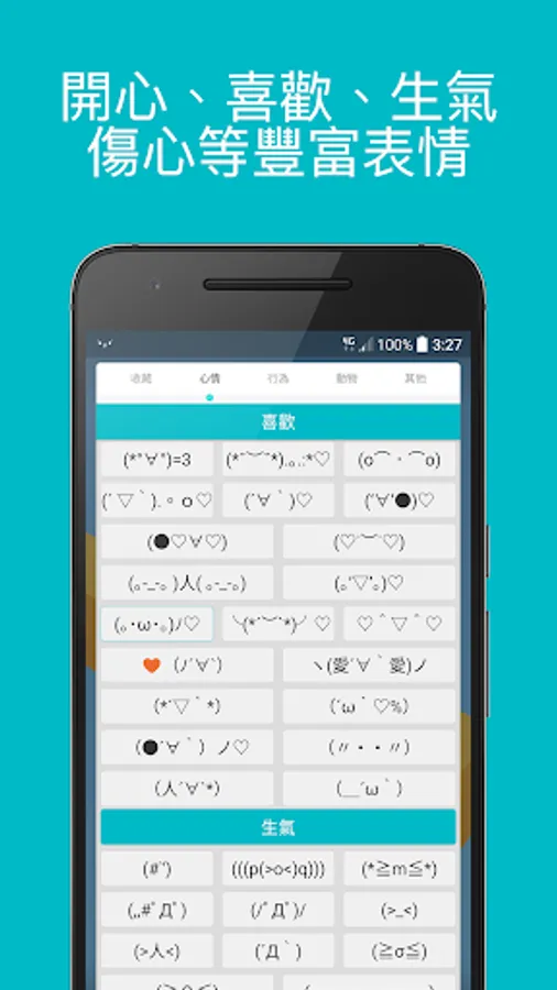 我們有提供常用、開心、喜歡、生氣、傷心等心情的表情符號,