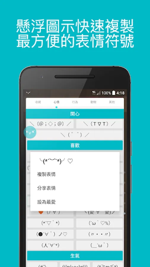 我們還提供懸浮視窗讓使用者可以快速複製表情符號,還可以收藏自己最愛最常用的,甚至自訂表情符號