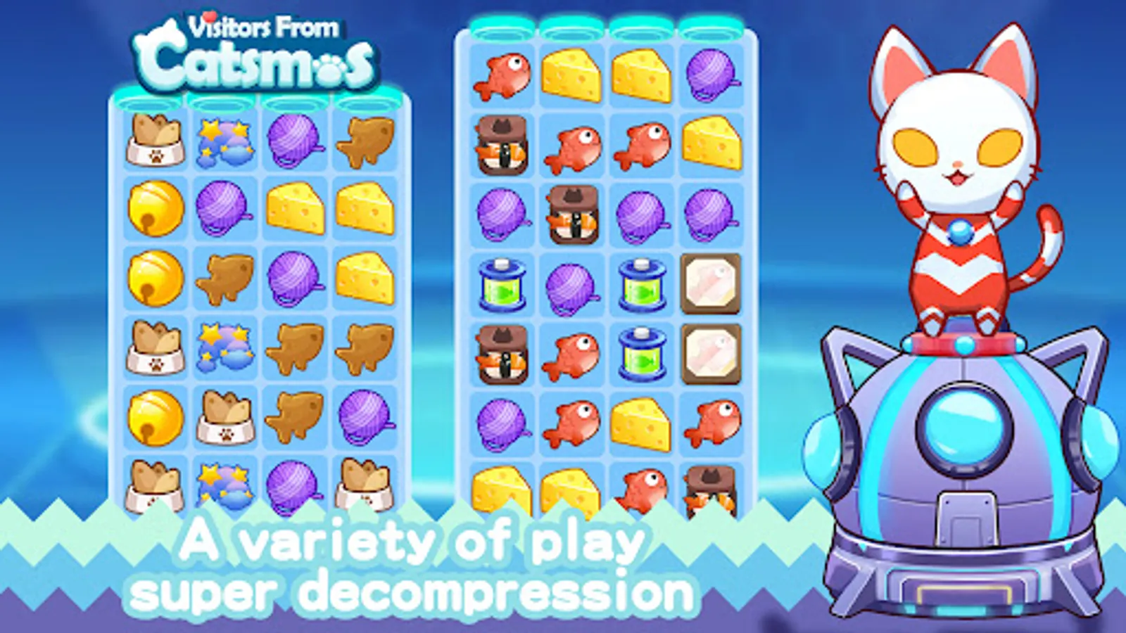 Play match 3 to help the cats from Catsmos collect furniture, food and items! The more objects they have, the more Catsmos mates they will attract to their house.