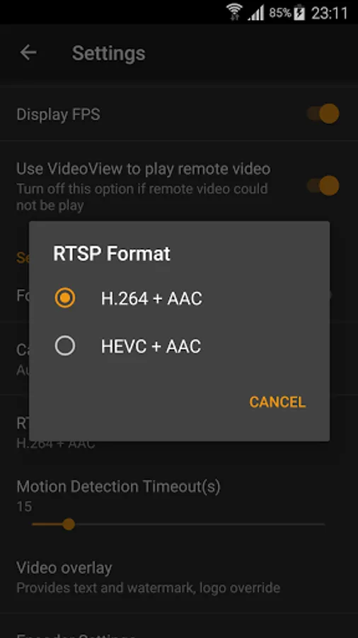 Using HEVC for video recording/streaming requires Android 5.0 or above, and the device must supports HEVC codec.
