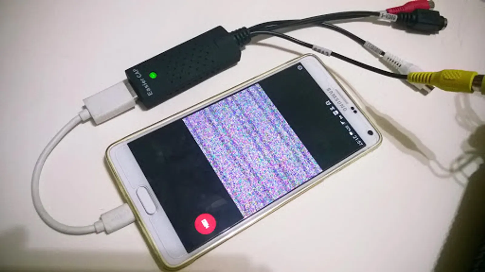 "EasyCap Recorder" can let your android device connect to EasyCap video capture card via USB-OTG. You can capture snapshot or record video WITH audio support.