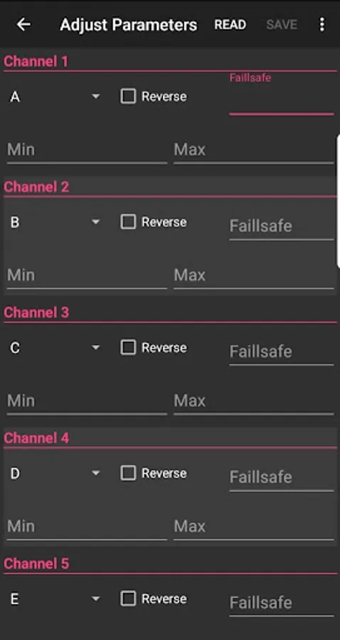 - Adjuist parameters: here you can adjust the limit of the transmitter's channel