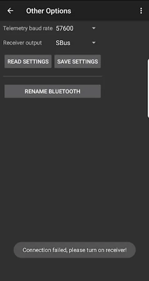 - Other Options: here you can change the telemety baud rate and the receiver output signal