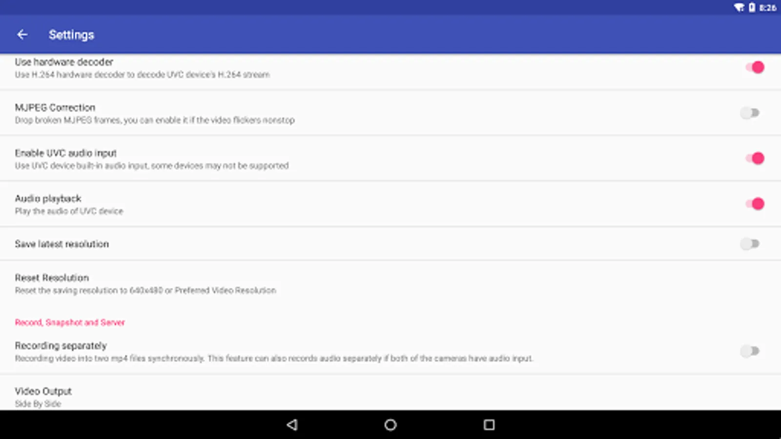*** The Pro version can save video record and snapshot into external SD Card or USB Disk, supports loop-recording and provides some extra features (e.g. 'Picture In Picture', 'Display Video On Lock Screen', 'Auto-record after connected' and so on) from General Settings and without ads***