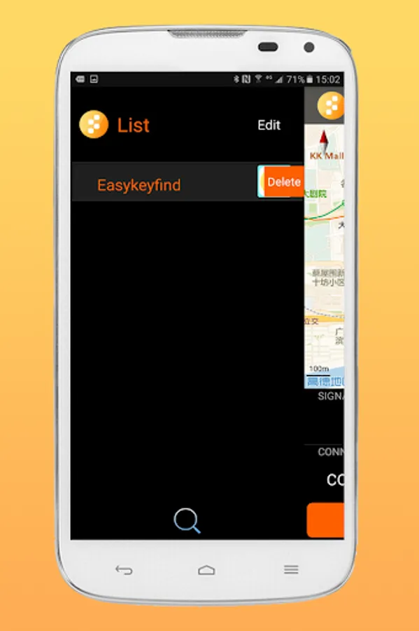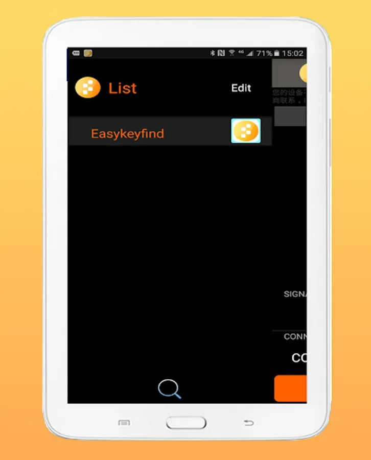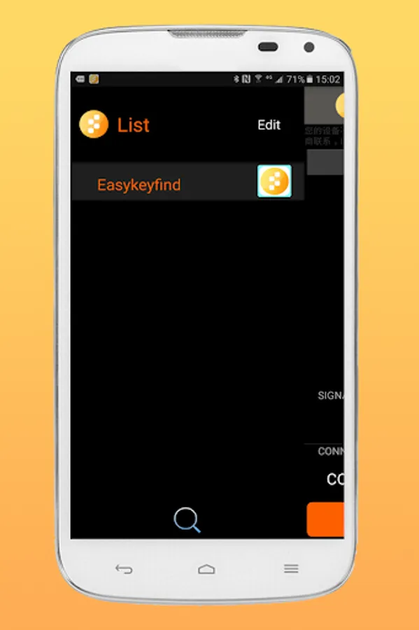 First of all, searching the Bluetooth of key finder. Tap the Scan icon in the Device List to connect with key finder, then the app will show its name and also you can rename it as you like.