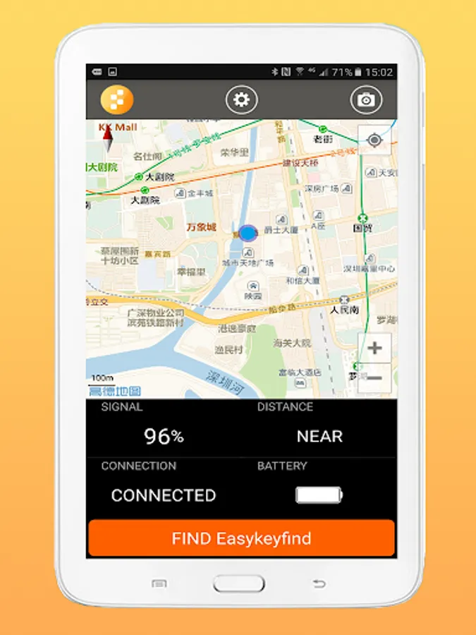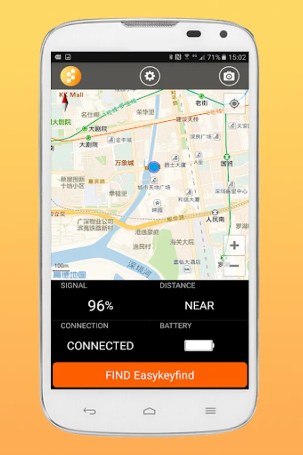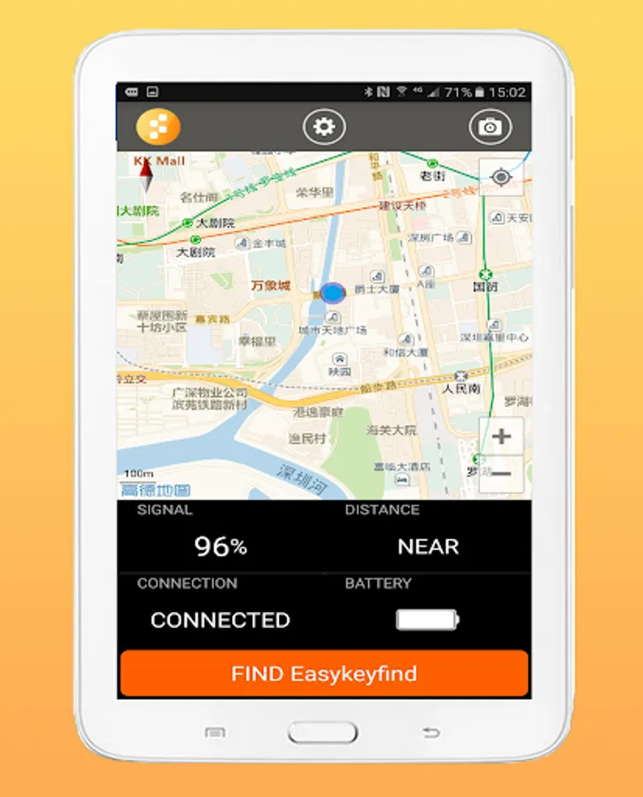 Also, the app can be used as Remote Shutter. Tap the camera icon to launch camera in the app. Press the button on the key finder to trigger the phone take picture or video.