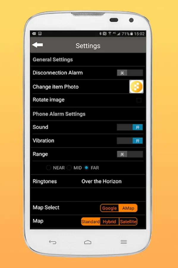 Basically speaking, when key finder goes out of range, the app will alert you with sound, vibration and flash. Alarm can be set on key finder, phone, or both.