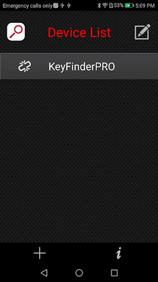 First of all, searching the Bluetooth of key finder. Tap the Scan icon in the Device List to connect with key finder, then the app will show its name and so you can rename it as you like.