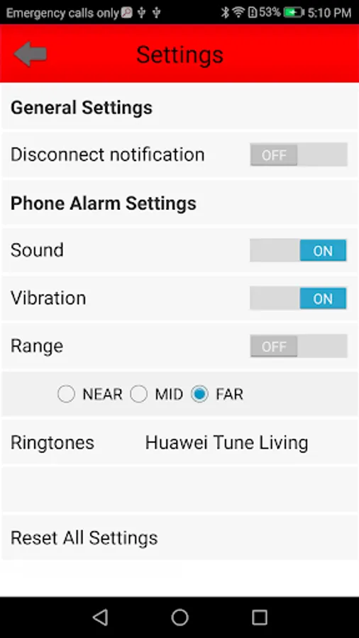 Basically speaking, When key finder goes out of range, the app will alert you with sound, vibration and flash. Alarm can be set on key finder, phone, or both.