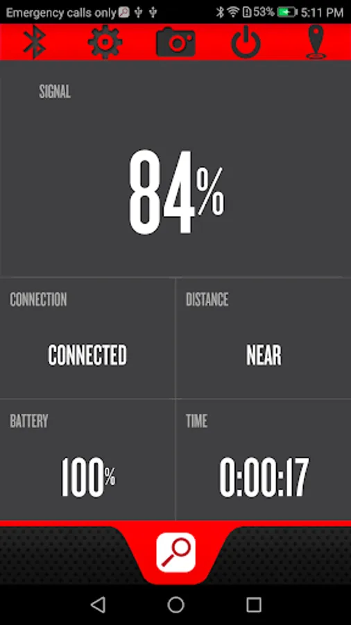 So, the app can be used as remote shutter. Tap the camera icon to launch camera in the app. Press the button on the key finder to trigger the phone take picture or video.
