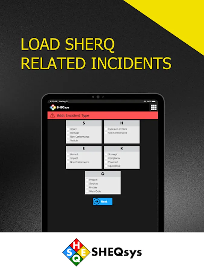 - Load SHERQ related incidents, near misses or potential incidents as they happen.