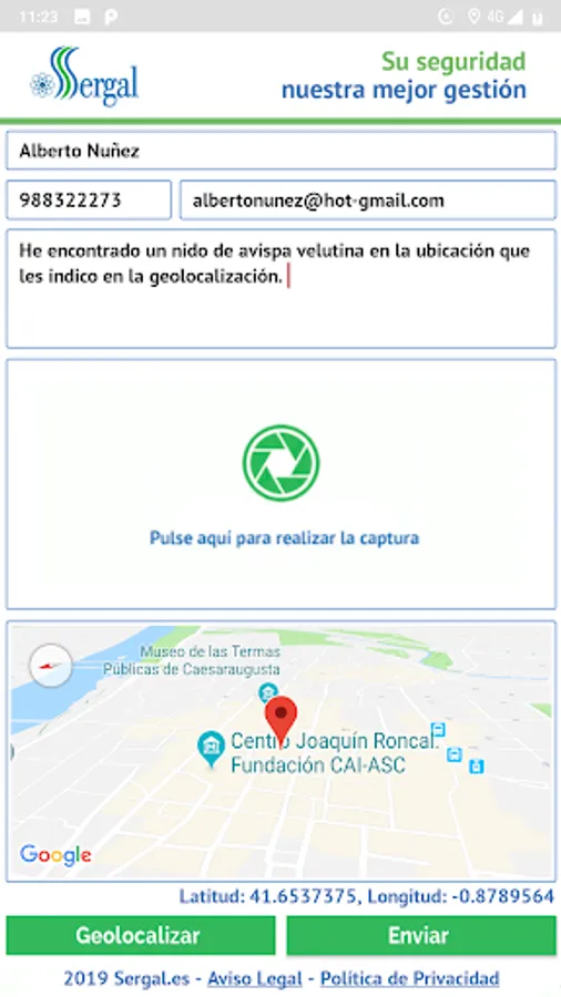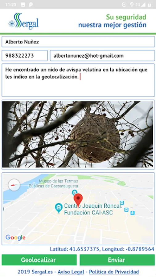Sergal APP, application with the clear objective of helping Sergal customers and non-clients in the task of Pest Control in both private and public facilities as well as in the environment. Send us a photo and our technicians will review it and provide the necessary solution to the plague. A tool to combat the Asian Wasp (Vespa Velutina) that is causing so much damage in the environment.