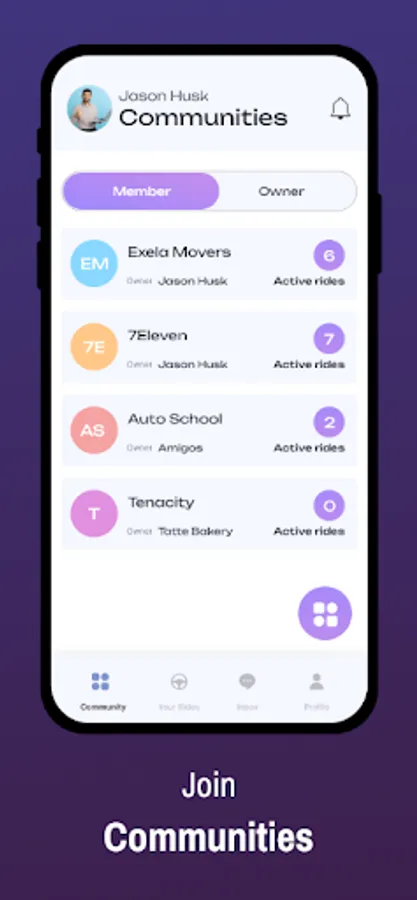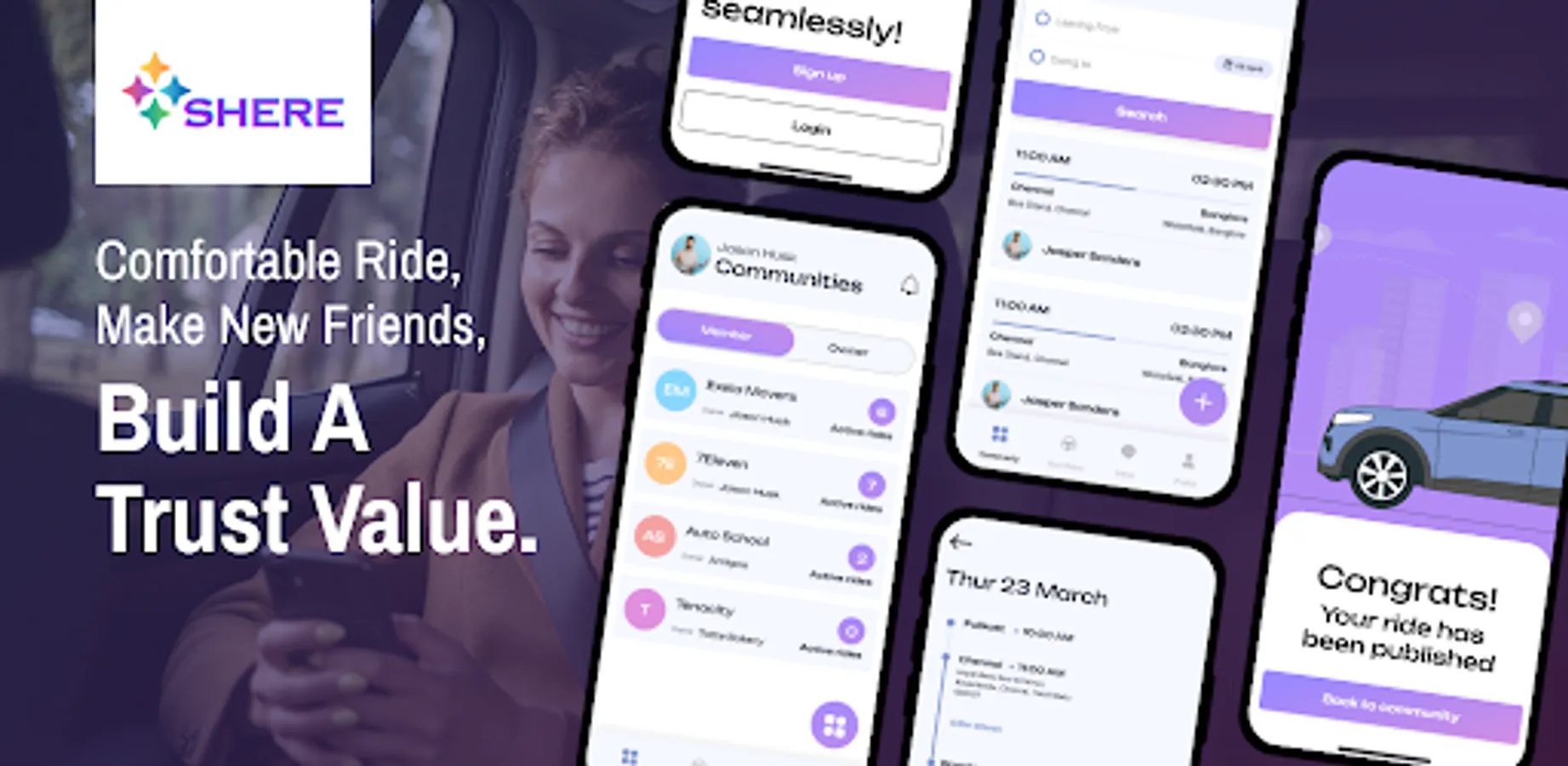 The purpose of this application is to develop a mobile application that enables users to create communities to share rides with one another. The application will create a platform where members of a community can connect with each other and share their rides based on the communities.