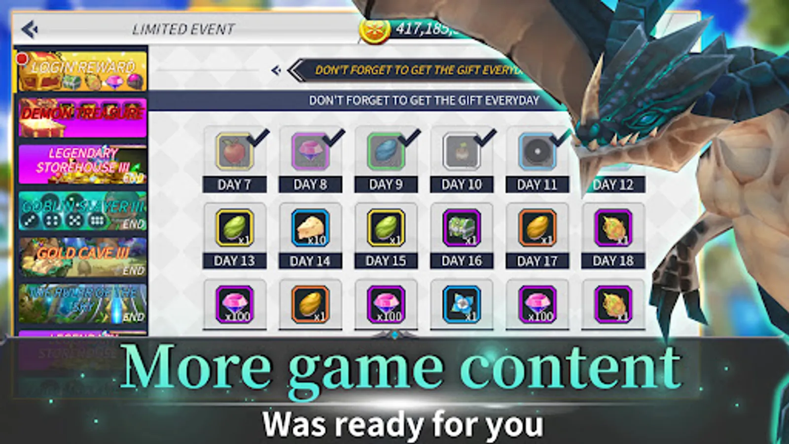 With daily login you can get abundant gifts and offline rewards in everyday.
