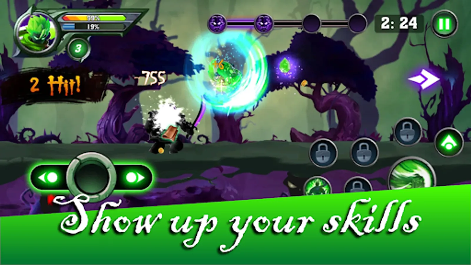Your shadow enemies are more and more dangerous after each level with different hidden kung fu skills. Remember to upgrade your hero skills and make sure they learn enough skills for the new battle. Precious skills can be unlocked after your hero reaches to a certain level. Some mystery ninja skills like the tornado jump may also be useful in fierce battles.