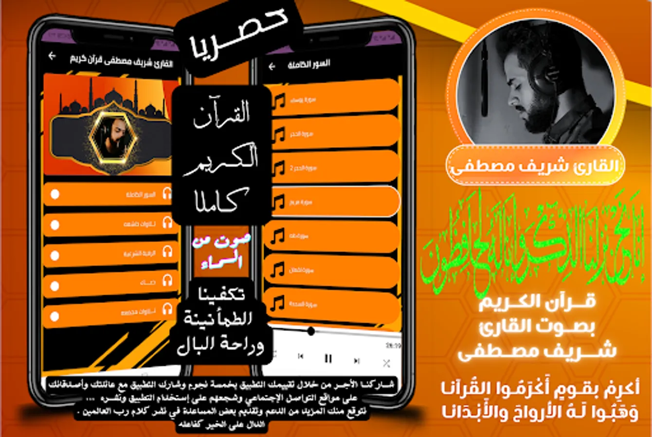 ⬅️ If you like the content of a Quran application with the voice of Sheikh Sherif Mostafa quran, and we hope so, we ask you to rate the entire Holy Quran application in the voice of Sherif Mustafa with five stars in support of the application. While you share the application with your family and friends on social networking sites and encourage them to use the Holy Quran application with the voice of Sharif Mustafa without a full net