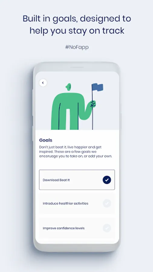 Beat it is a mental health based mobile application, with the opportunity to improve men's relationship with themselves. A challenge which encourages users to abstain from solo sexual pleasures whilst addressing the issue of pornography that has fuelled the fire.
