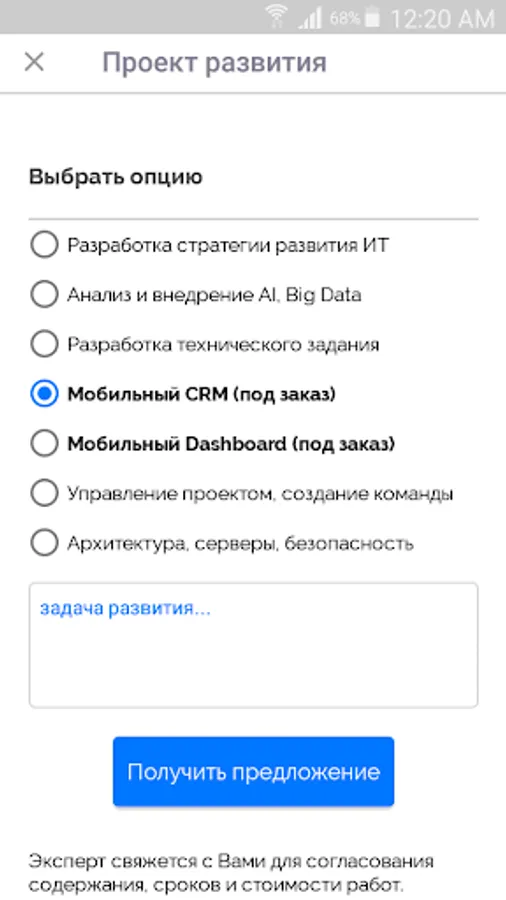 The result of the service is the definition of the content, roadmap and budget for IT development. The service offers additional services in the following areas: