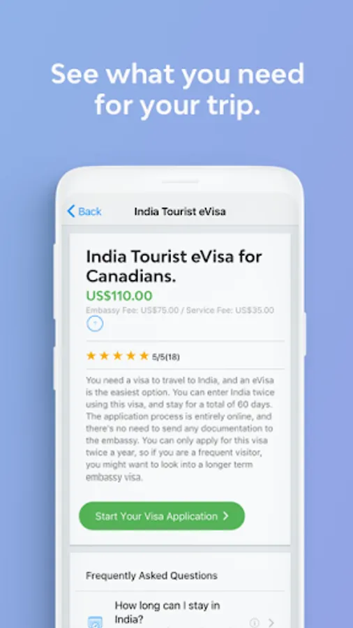 1. Straightforward Visa Requirements: We provide up-to-date information on 150+ countries in our app, for free. Just input your citizenship, destination, current location, and purpose of travel, and we'll tell you what you need to cross the border.