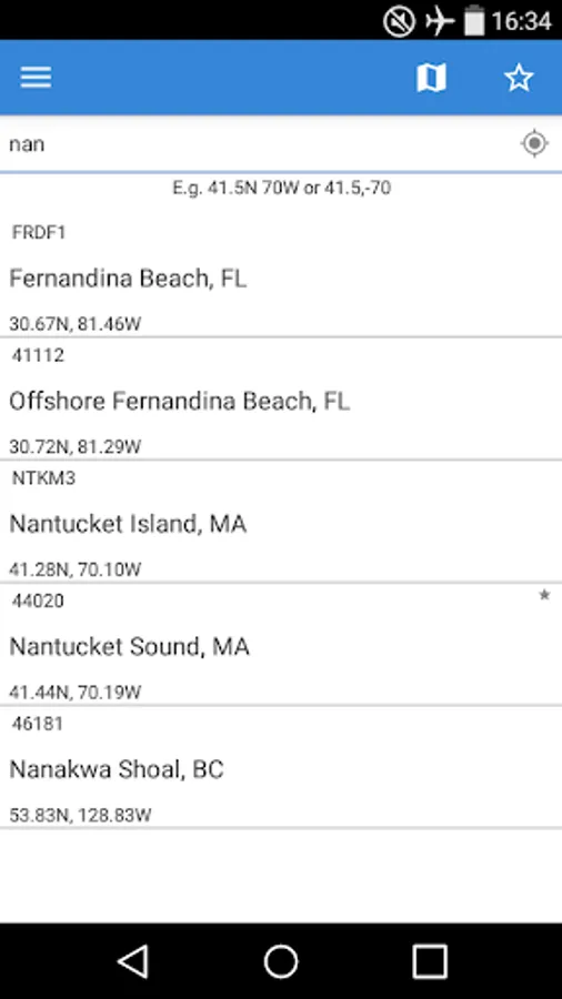 - Search weather buoys by name, description, region, US state, or geolocation (latitude, longitude - GPS location service supported)