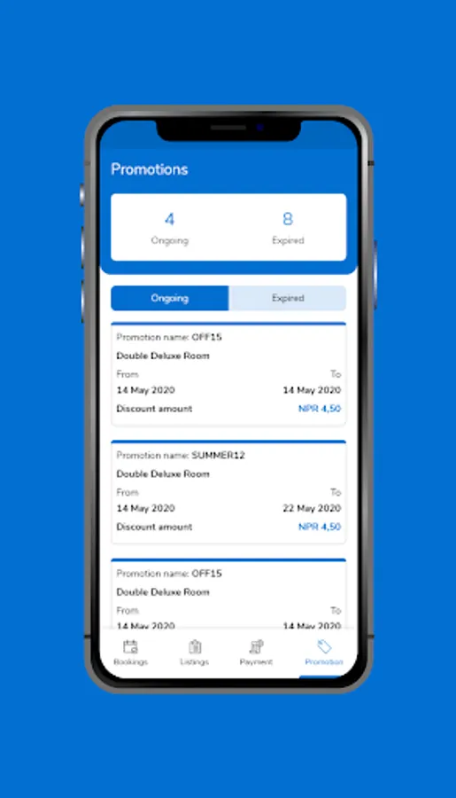 HolidayPasal Super App is an application that enables hotel owners and vehicle rental vendors to manages bookings received from holiday pasal. One can also view overall statistics of the bookings and income.