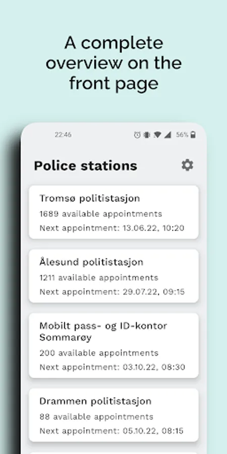 This app provides a full overview of available appointments to book passports and ID-cards in Norway.