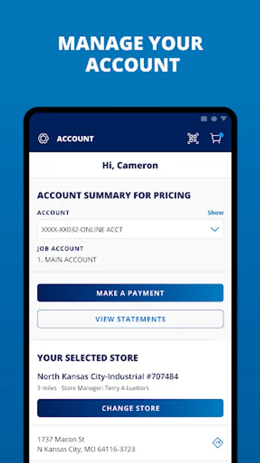 24/7 access to your account - Easily view your pricing, your purchase history, and check nearby store inventory.