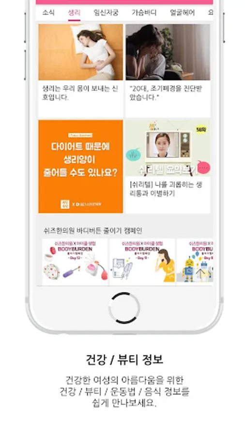 The uterus very important for female health, so called the second heart. However, many women don't care about uterine health at all unless they have special pain. In addition, it is difficult to find detailed and accurate information related to uterine health. In She's app, you can receive in-depth and accurate uterine health information by uploading column and informational content of female medics who are in charge of uterine treatment every day.