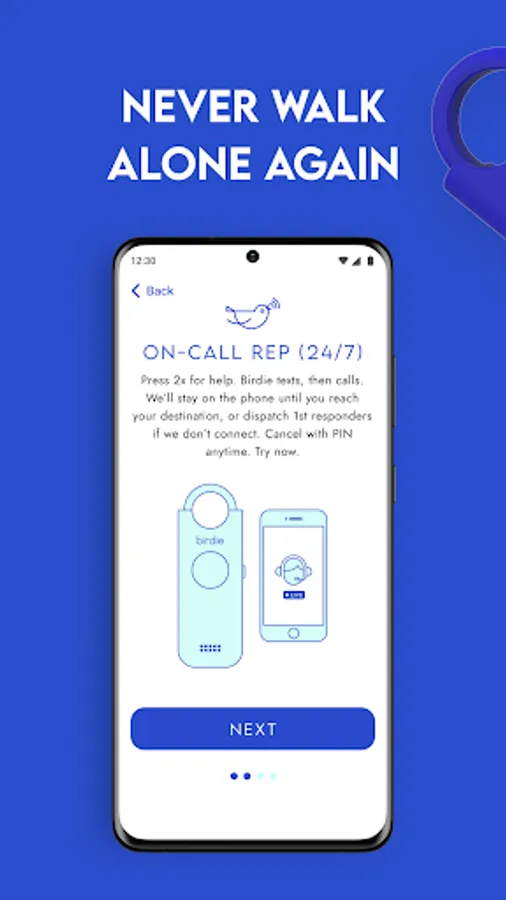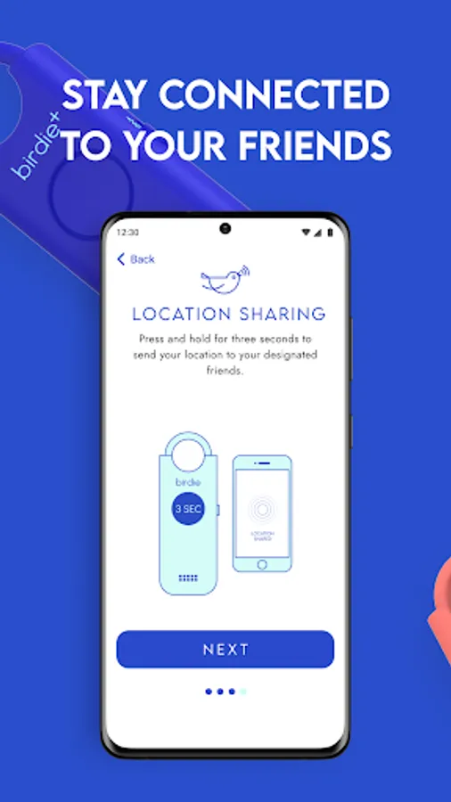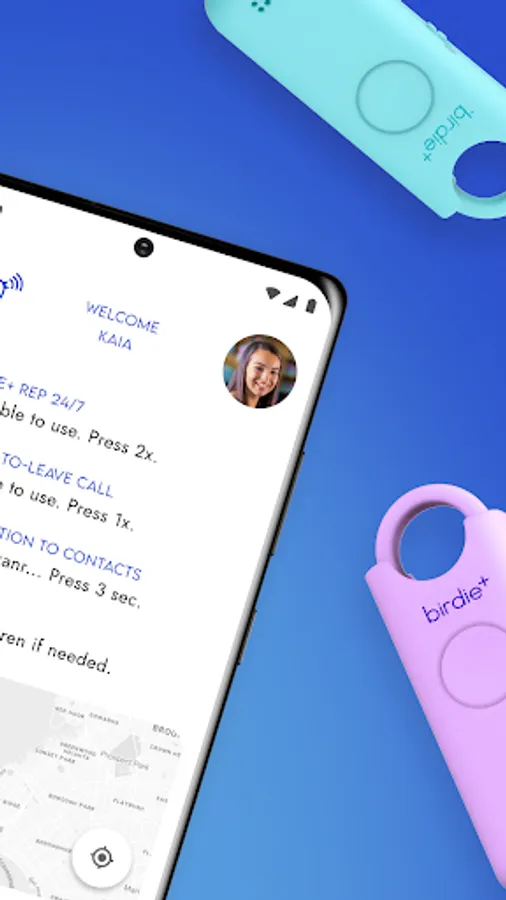 *The App uses the background connection to a birdie+ device via Bluetooth so that when the user activates the device, the app sends an alert together with the user's location to our 24/7 reps (provided by Noonlight https://www.noonlight.com).