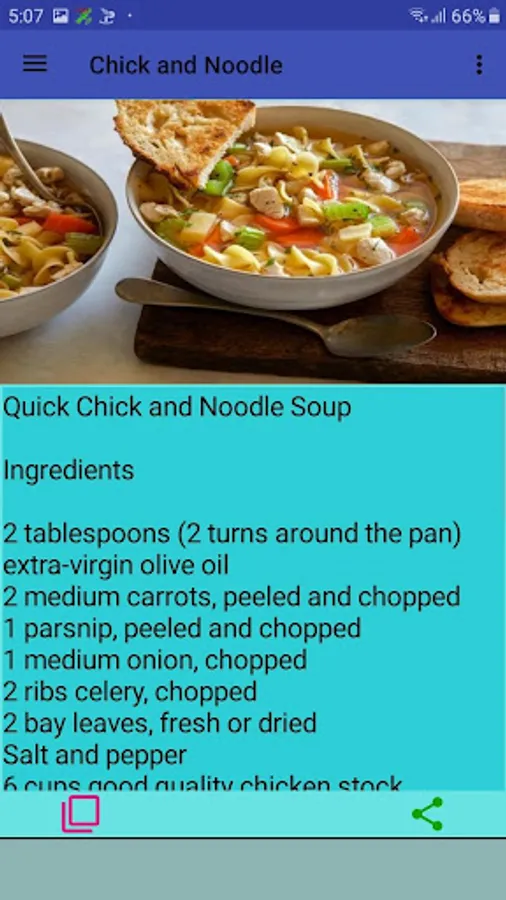 If you do not know about how to make them well, you can try using this Soup recipes app. In this recipes app you can find chicken noodle soup recipes too. In the Bottom of this application, there is a button to search the name of the recipe. You can find the name of the recipes you wish to enter. eg tomato ..., noodle ...., quick ... and so on. Then you can select the recipe you want, eg: Chicken noodle Soup Easy. The page will be directed to the selected recipe and then display recipe of how to make the soup that you want.