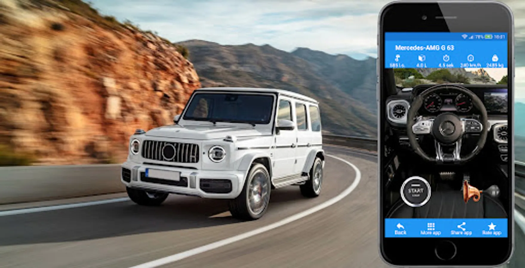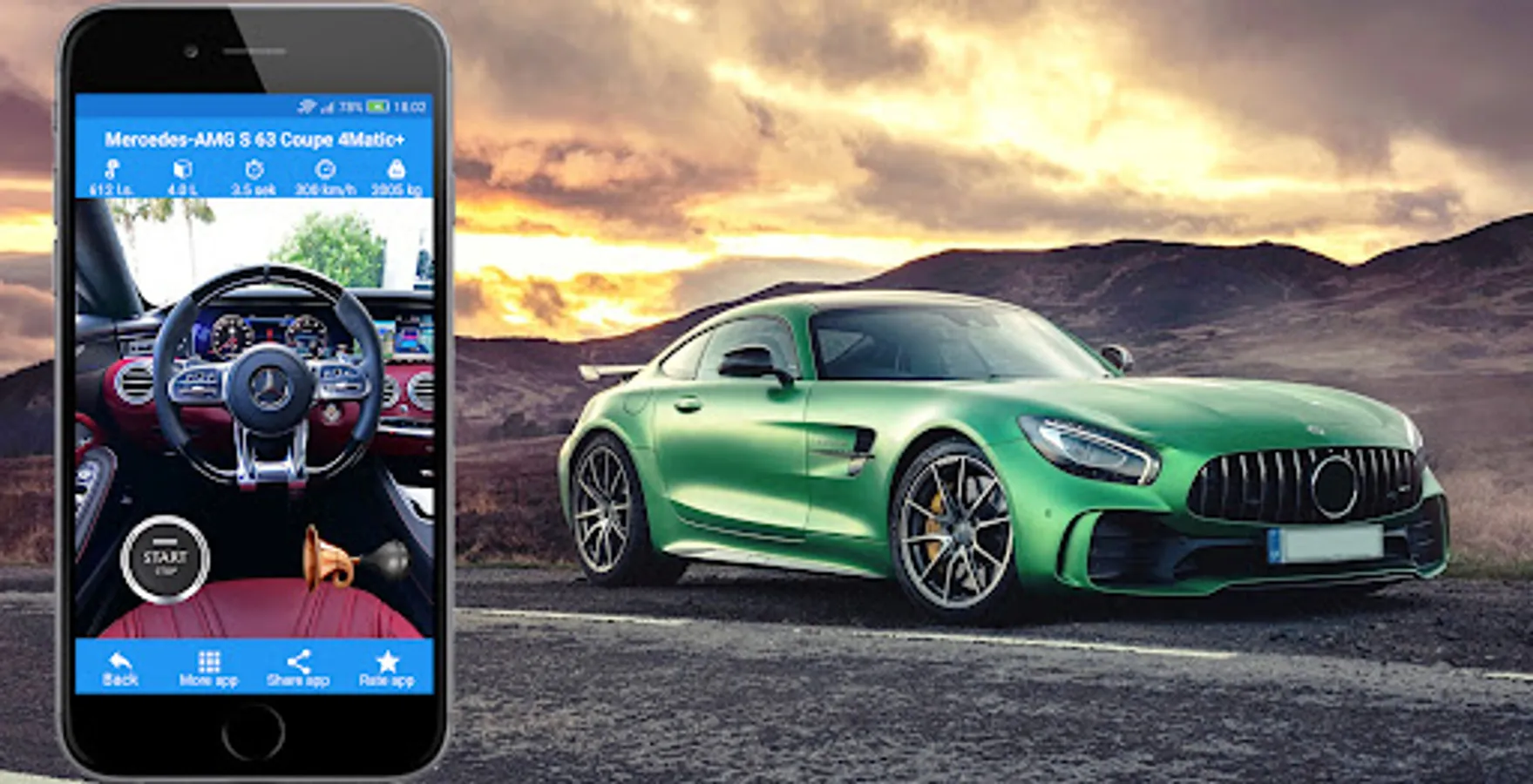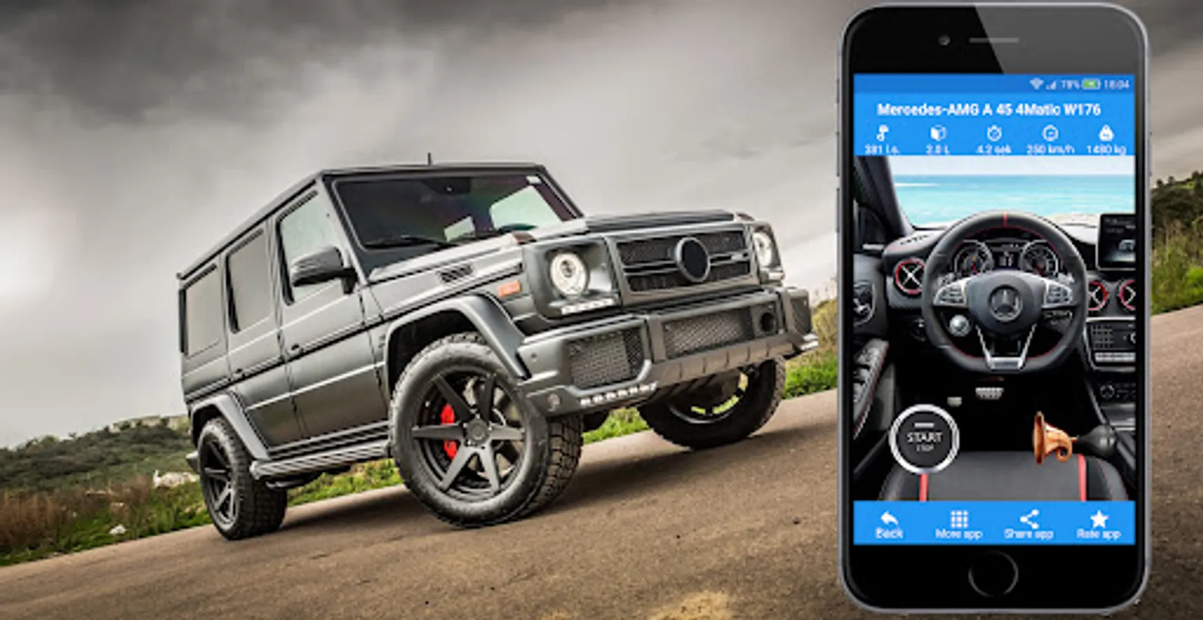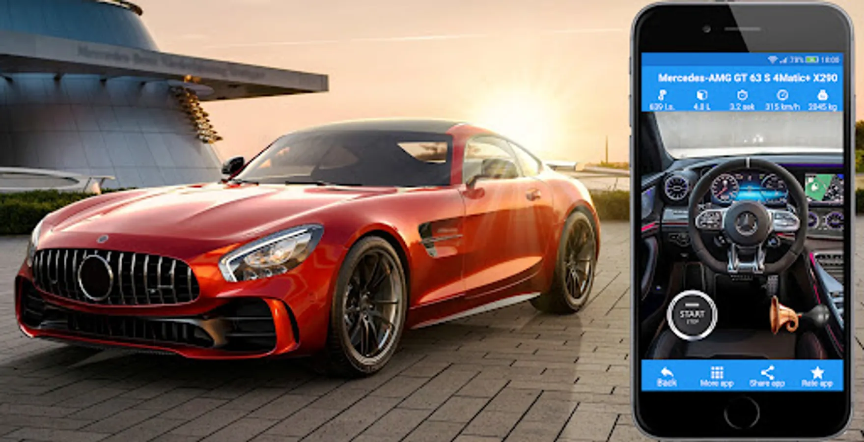 You will like the app if you love cars and listen to the sounds of car engines, especially mercedes amg. After all, this application contains the sounds of different cars of the amg mercedes family, such as: mercedes amg gt 63 s, mercedes amg gt R, mercedes amg G 63 Hyundai and many others. The application also contains high-quality graphics of the appearance of the car in a bright color, as well as the interior of the car. In the application, you can listen to the sounds of the engine and also turn on the horn or the car horn, you will like to play friends or arrange pranks as if the helik amg 63 or the powerful sound of the helik motor from your phone is beeping. In the appendix about each model there is a brief technical description: car speed, acceleration to 100, car power and others. With this app you will be able to listen to the sounds of sports cars anywhere and enjoy it. A clear and easy-to-use interface where the amg sound is turned on by pressing the engine start button. This application is created for fans to turn on the sounds of car engines and enjoy them, as well as for practical jokes with friends, pranks and entertainment. The developers do not cooperate with automakers in any way, and the application is not an advertisement. All graphic images are freely available. We hope you like our application, write to us what other cars we should add.
