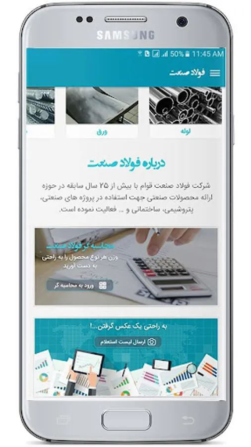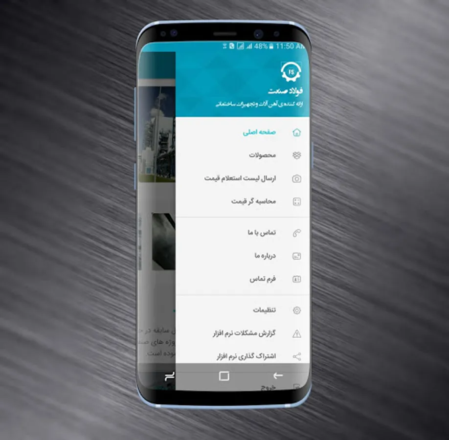 Mobile Apps steel industry, to provide detailed information of the company's products, create and have been published. In order to respect the rights of customers as well as simplicity of interaction, in addition to the standard features mobile applications such as changing the font size, form, report form software problems, you can write a list of queries in the embedded software that uses the the software can capture their price quotations list and send it.