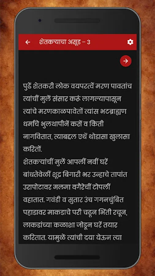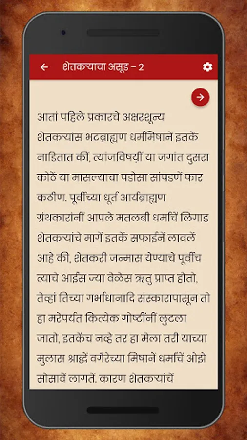 This is a wonderful meteor invented by Mahatma Jotirao Phule. He does not feel that the whip a farmer carries to control his livestock should be limited to this purpose. On the contrary, he feels that it should be used to overcome all the injustice the farmer faces. It is the strongest weapon in the hands of farmers to fight the exploitation, to pursue truth and to oppose the wicked. He is a firm believer that our wealth has abandoned us because she is fade up of the untouchability, she is fade up of remaining hungry, she is gone back to her father, beyond the seven seas. Without her, everyone has to face hunger and poverty, there is no other alternative. If we truly wish to bring her back to our country then we must try it. We can do so if our farmers learn all the arts, if they are learned, then only they will be able to bring her back.