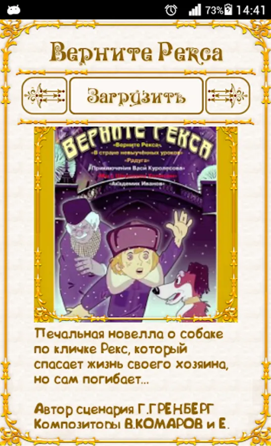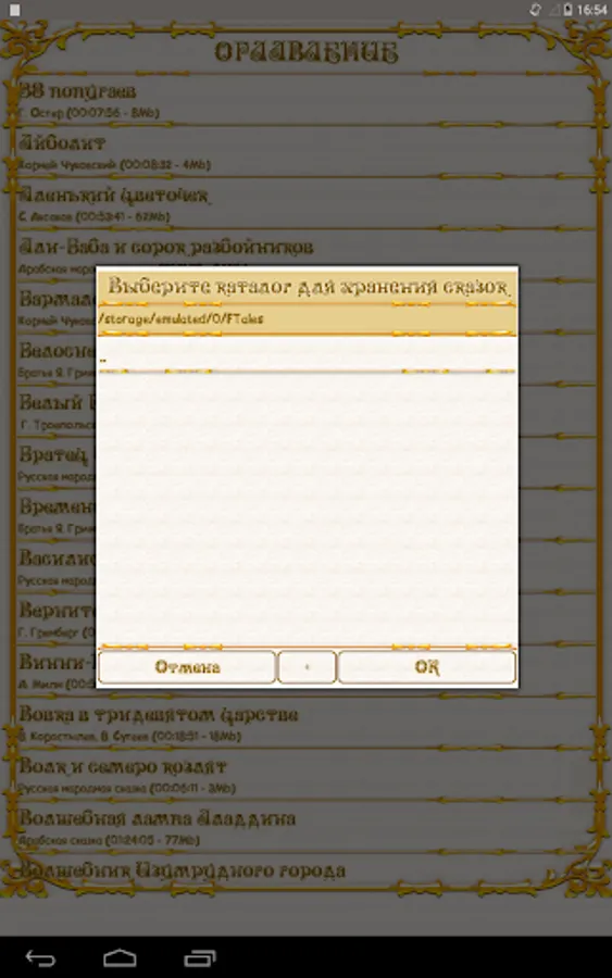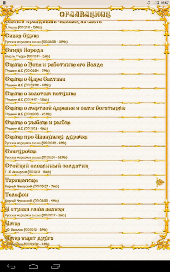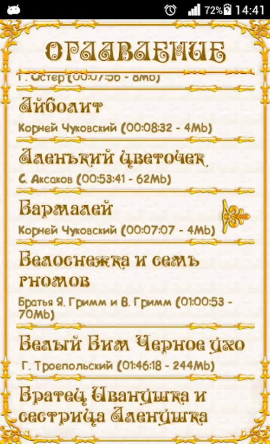 To download tales application requires access to the Internet. To listen to the works of access to the global network is not needed.
