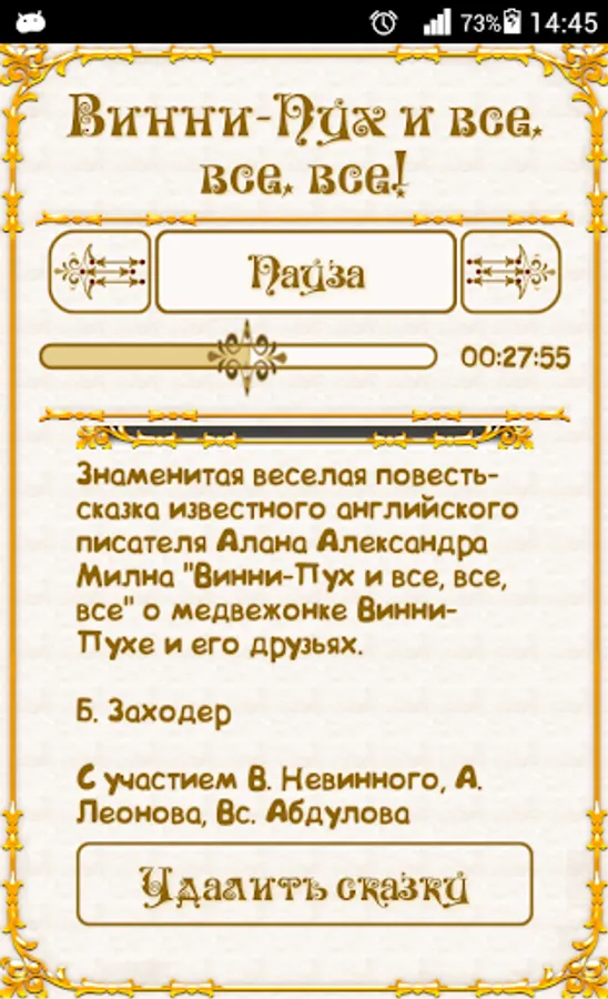 The city of fairy tales - the application contains tales from old vinyl records, now unfashionable, neglected, unwanted ... voiced by professional actors or by the authors themselves. Listen to them again - and be sure to let your kids listen to.