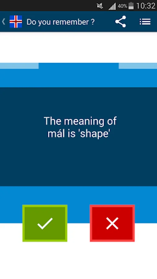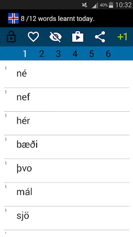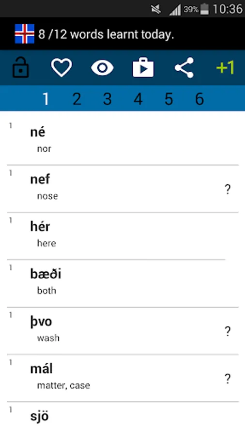 Pace yourself as you go through the almost a thousand common and popular Icelandic words available in the app. In just a matter of weeks, you will have an essential knowledge of the Icelandic vocabulary !