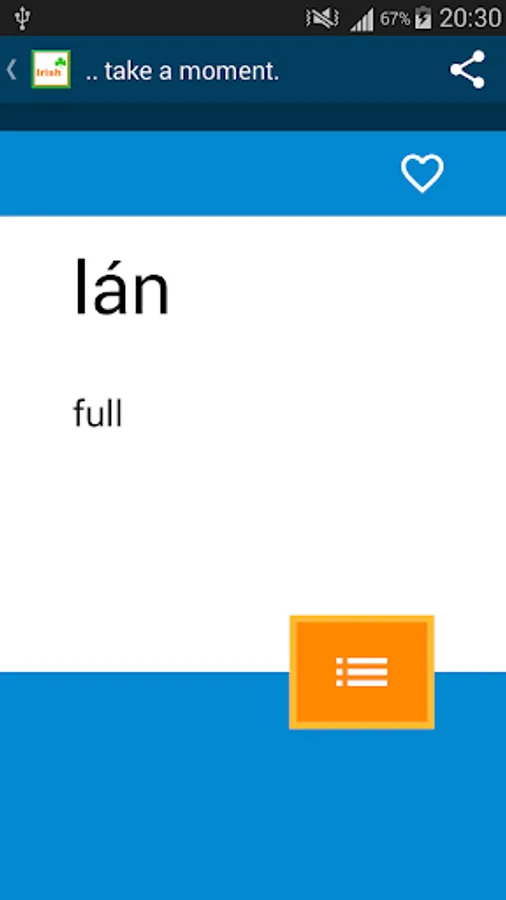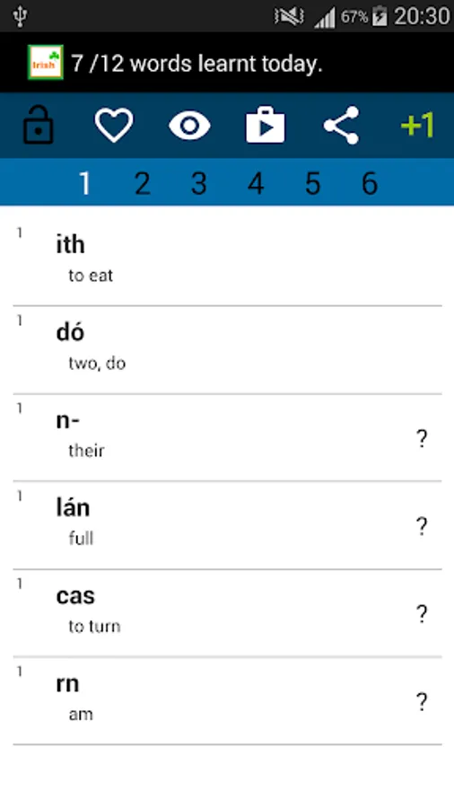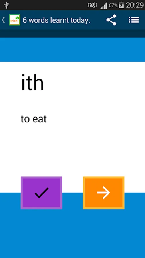 Pace yourself as you go through the almost a thousand common and popular Irish words available in the app. In just a matter of weeks, you will have an essential knowledge of the Irish vocabulary !