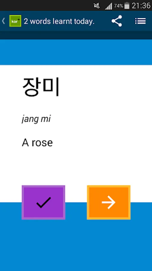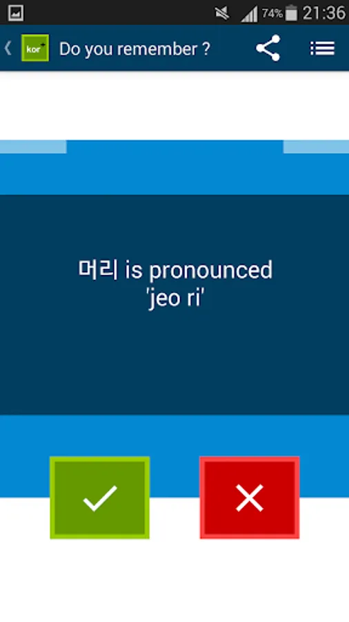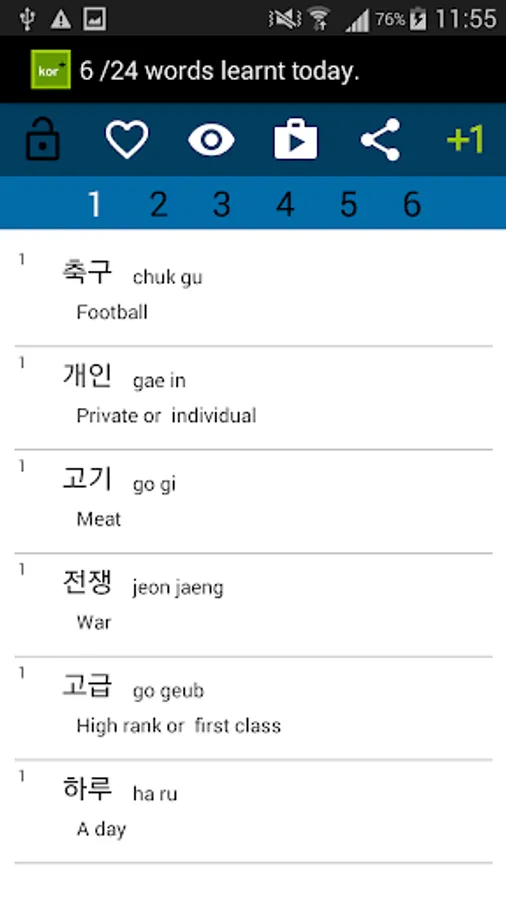 Pace yourself as you go through the almost a thousand common and popular Korean words available in the app. In just a matter of weeks, you will have an essential knowledge of the Korean vocabulary !